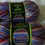 I am kind of upset that it didn’t show the regular prices of these on the receipt. I know that each ball was at least $5 normally but some were more. The 2 things of sock yarn were each normally $10. So this is over $100 worth of yarn that was all on clearance for $1 and $2!!! This is all wool except the Pomp A Doodle. Yuji picked out the Pomp A Doodle – she was determined to have some kind of weird yarn. I had actually been wanting some of this in white for xmas stuff… unfortunately the white was not on clearance -.- so I guess Yuji will be getting xmas leg warmers or something with this on top.
