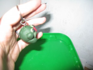 So here’s the first thing I made! I made it on May 23rd (and I’m typing that so I can know exactly when I started, lol). It was suppose to be a penguin, but I think it looks more like if Kirby swallowed a green owl. Chance immediately recognized it as a penguin though, so I don’t know…