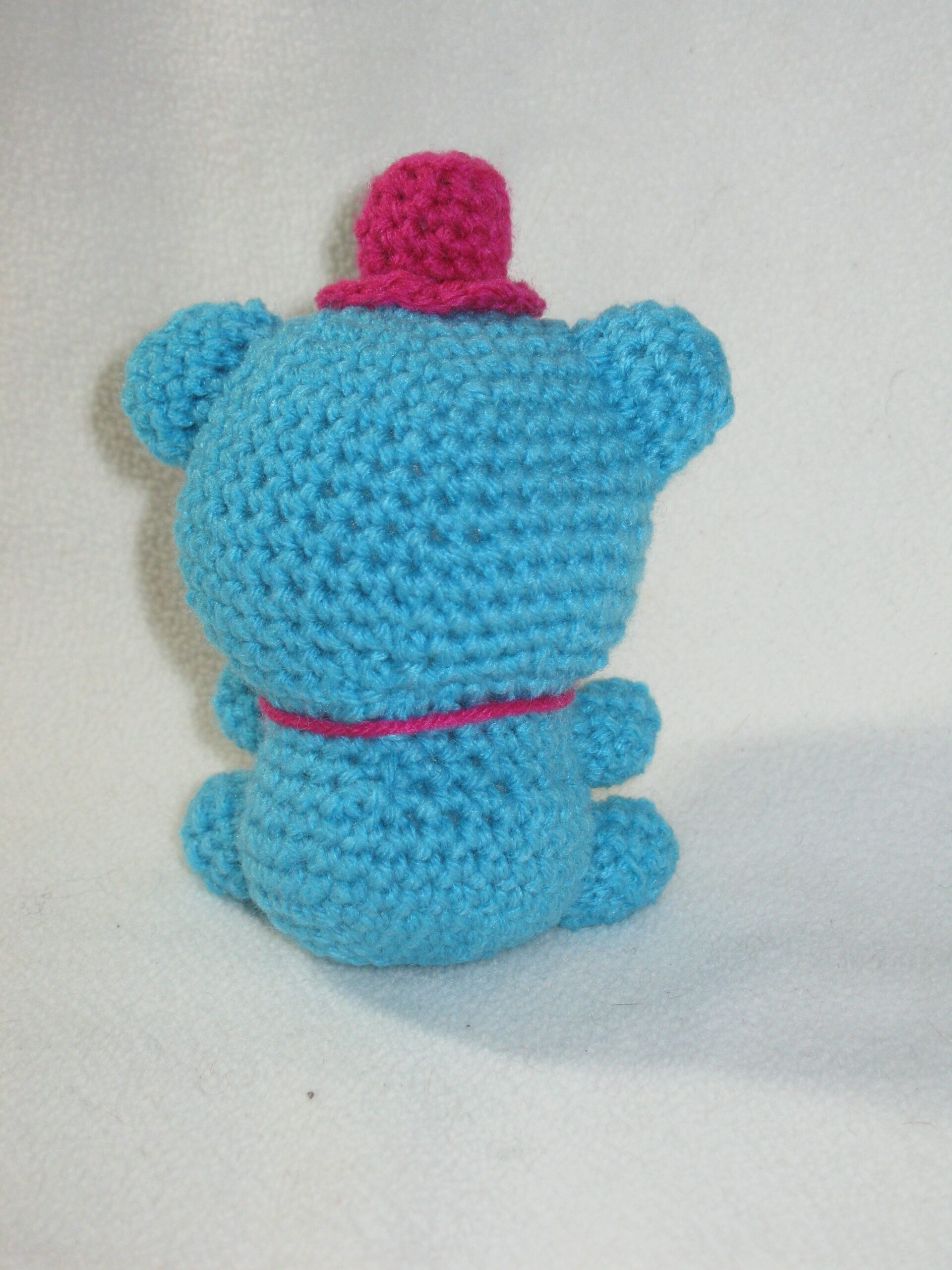 This adorable little plush Freddy is handmade with love using acrylic yarn, polyester fiber-fill and plastic safety eyes. He is about 5.5 inches tall and ready to go to his new home. This one is turquoise with yellow details, pink hat, and pink eyes and nose. Let me know if you want a different color!