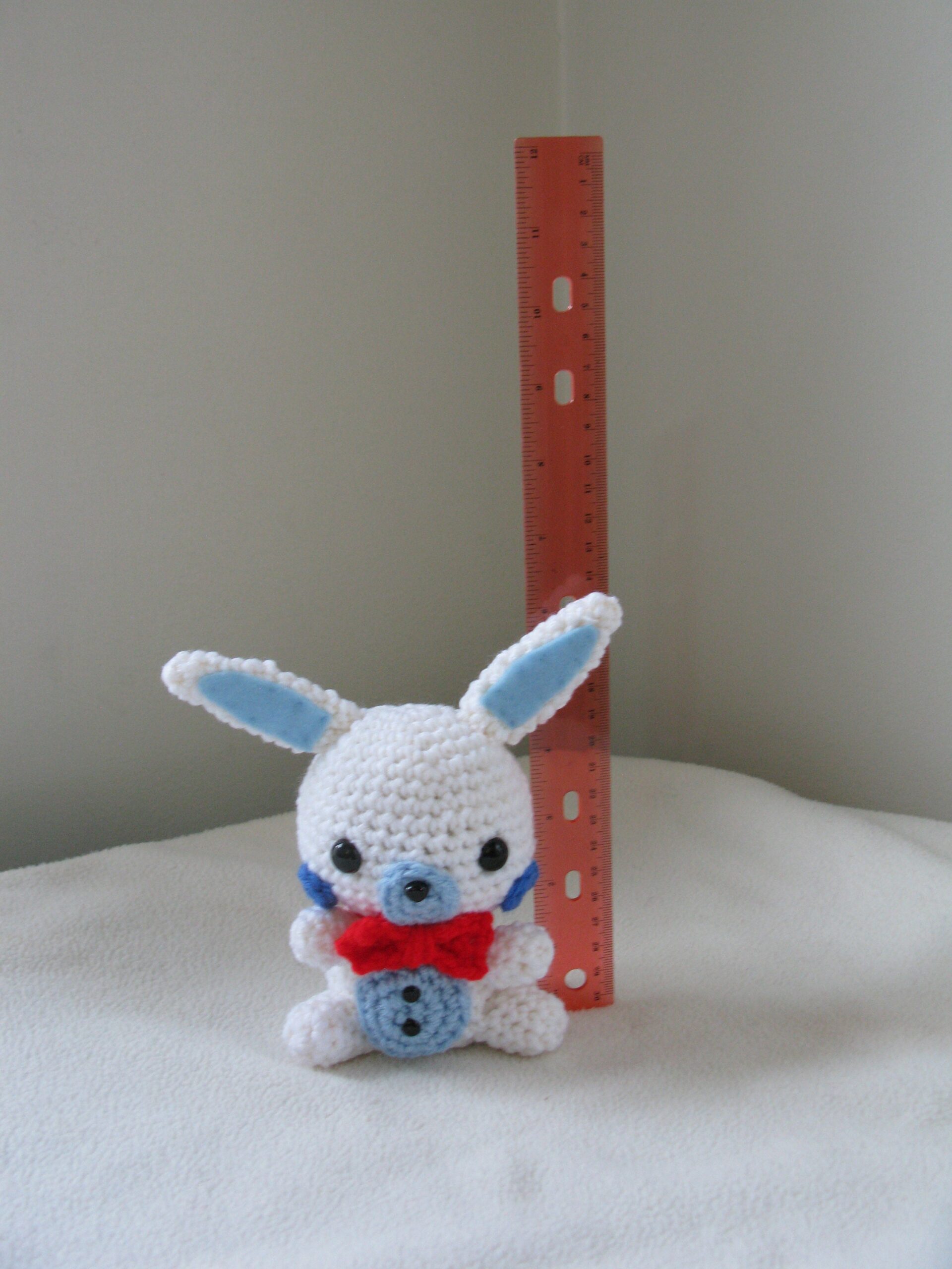 This adorable little plush Funtime Bonnie is handmade with love using acrylic yarn, polyester fiber-fill and plastic safety eyes. It is a little over 6″ tall including ears.