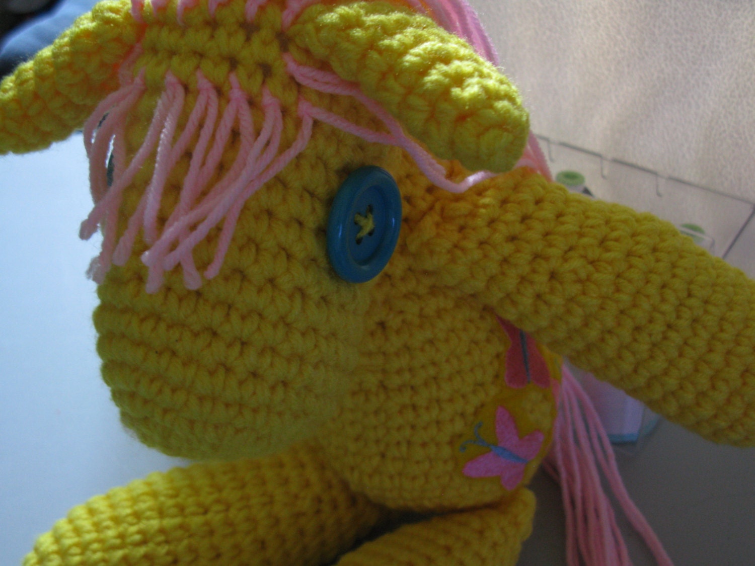 Fluttershy crocheted in Smartypants style. Why? Because I can. that’s why. Wanna fight about it?