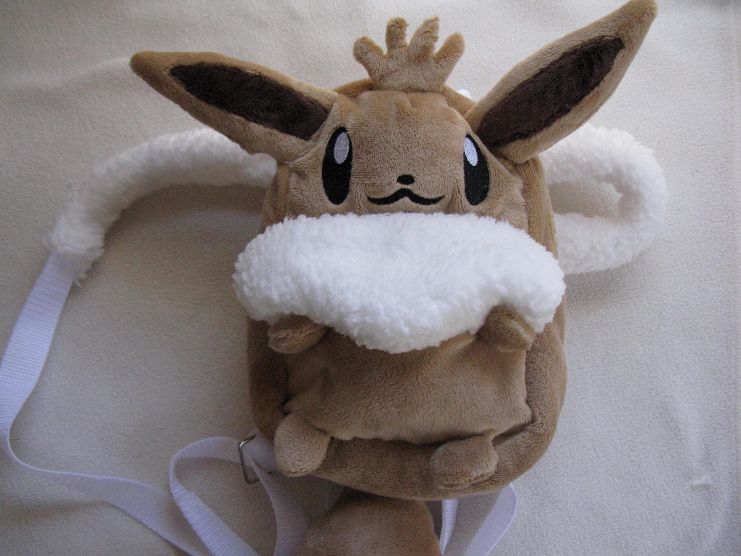 This is a handmade mini backpack great for Penny cosplay or everyday use. The outside is made of minky and sherpa fleece, with embroidered face details. It is about 8.75″ not including the ears and tail, about 16″ including the ears and tail, x 6.5″ x 3.5″. The lining is a cotton licensed pokeball fabric and is about 8.75″ x 6″ x 2.5″ so it will fit a phone and wallet as well as other small items. The straps are adjustable up to 33″ meaning it will fit a wide variety of sizes of shoulders, and the fluff on the straps can be moved so you can put them wherever is comfortable. It is stuffed with Poly-fil polyester stuffing and has polyester bag foam inside to give it stability.